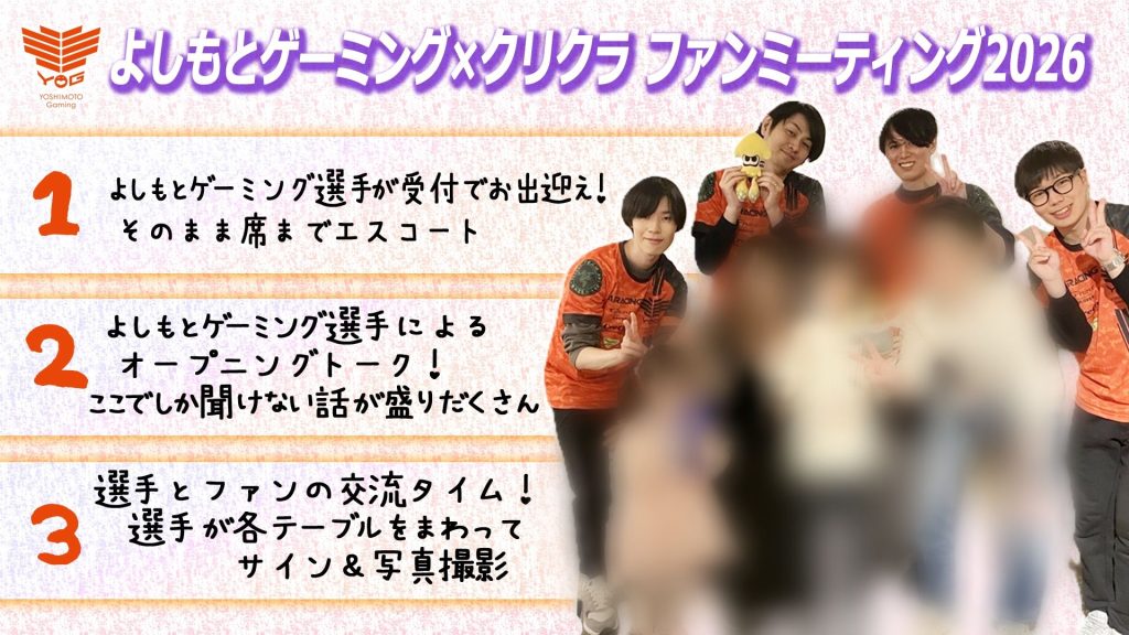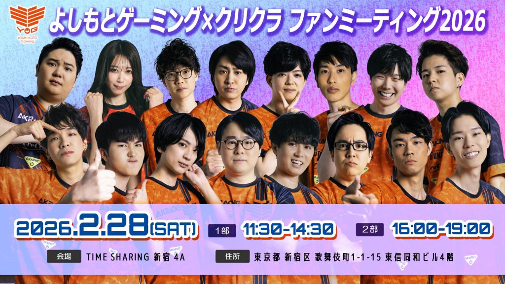 【一般募集】2月28日(土)よしもとゲーミング×クリクラのファンミーティング 2026からお申込み可能になっております。